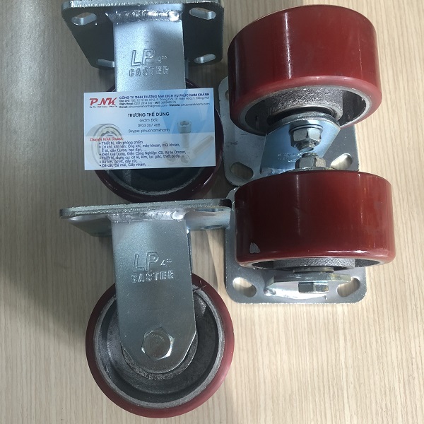 Chất liệu bánh xe: PU, Gang