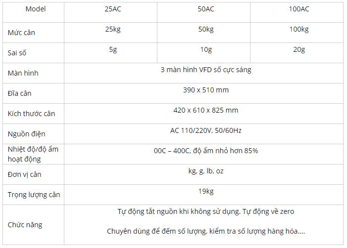 Phân loại theo dòng cân tải trọng: 25kg, 50kg, 100kg.