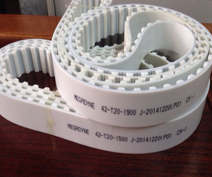 Dây curoa MEGADYNE PU T5, AT5, T10, AT10, T20, AT20, 5M, S5M, 8M, S8M, 14M, 14RPP, H, L, XL, MXL… Chất liệu làm từ nhựa tổng hợp bên trong có lõi thép. Dây nhập về nguyên cuộn dài 100 mét bản rộng 100mm, 60mm, 50mm, 32mm, 25mm, 16mm.