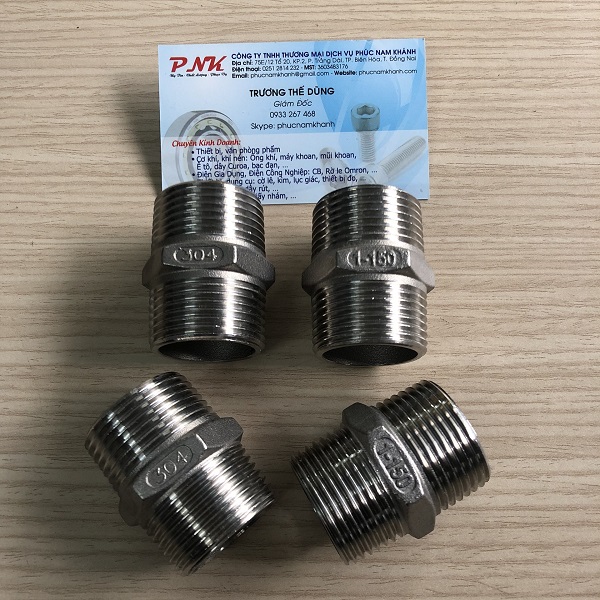 Ứng dụng: giúp kết nối các linh kiện, nối 2 đường ống ren trong lại với nhau, Chống ăn mòn và chống ô xi hóa cao, chịu nhiệt cao, độ cứng, độ dẻo ở mức tiêu chuẩn, thường sử dụng phổ biến trong gia công cơ khí, thực phẩm, thủy sản, hóa chất, xi măng, đóng tàu...