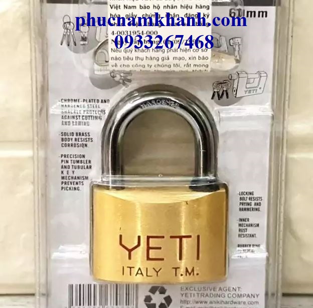 KHÓA YETI ĐỒNG THAU 60MM
