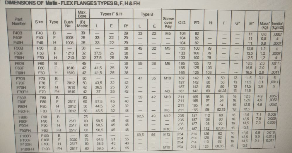 Mã khớp nối Martin Flex USA: F40, F50, F60, F70, F80, F90, F100, F110,...