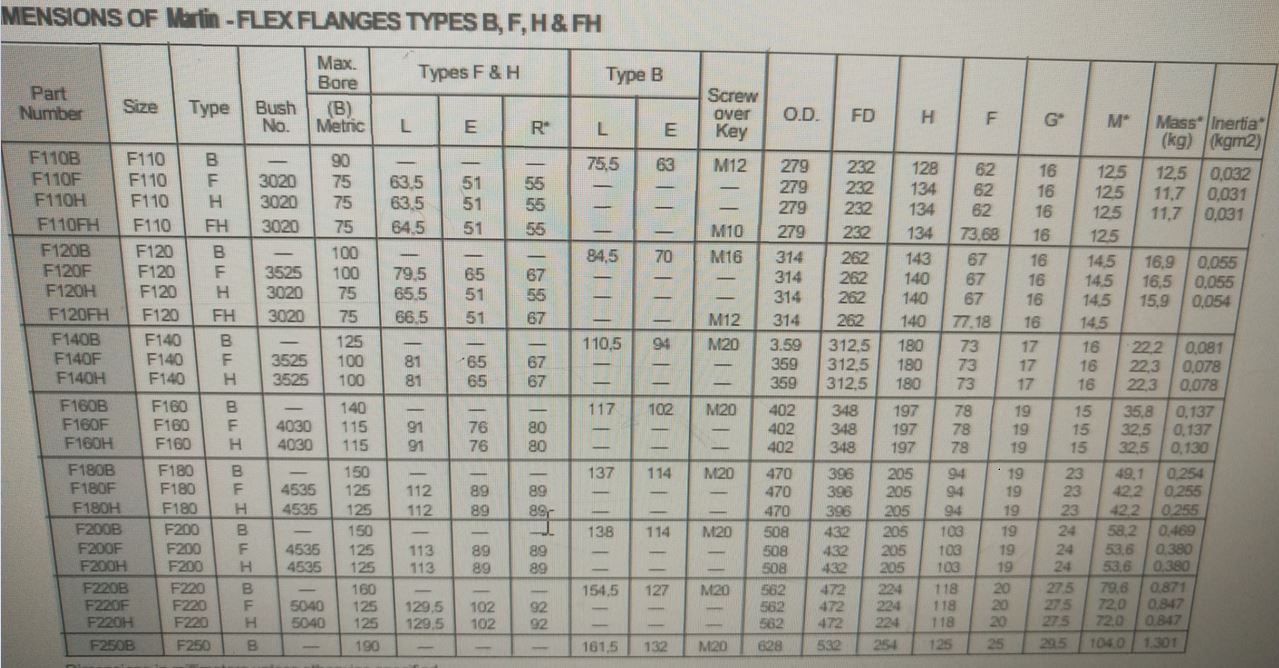 Mã khớp nối Martin Flex USA: F40, F50, F60, F70, F80, F90, F100, F110, F120, F140, F160, F180, F200, F220, F250,...