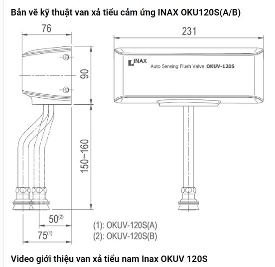 Bộ van xả tiểu cảm ứng INAX OKUV-120S(A/B) dùng pin đến từ thương hiệu thiết bị vệ sinh INAX
